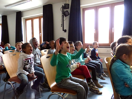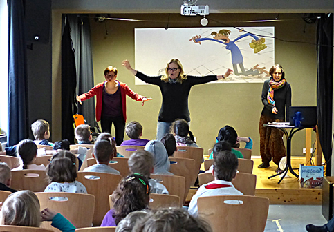 Bei der Lesung der „Monstergrüße am Morgen“ in der Jugendkulturwerkstatt Leipzig im März 2015 mussten alle ordentlich mithelfen, um ein echtes Monstergeschrei ertönen zu lassen …