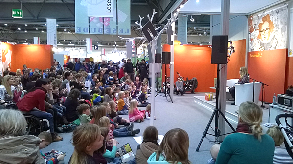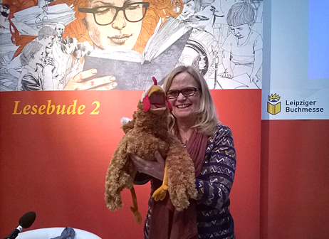 Voll war‘s, bei der Lesung auf der Leipziger Buchmesse 2015. Ganz viele große und kleine Zuschauer rätselten mit Henriette, wer denn wohl ihr Ei geklaut haben könnte … |